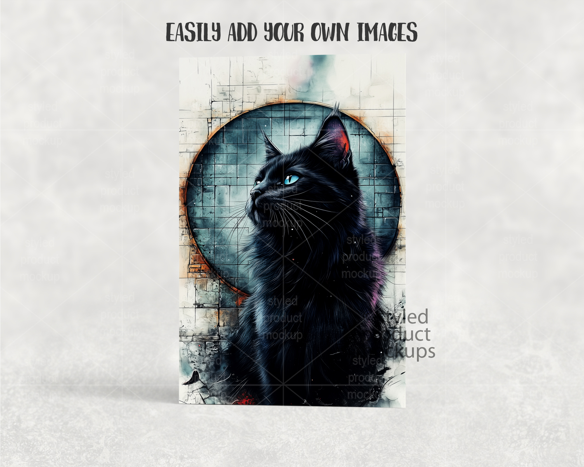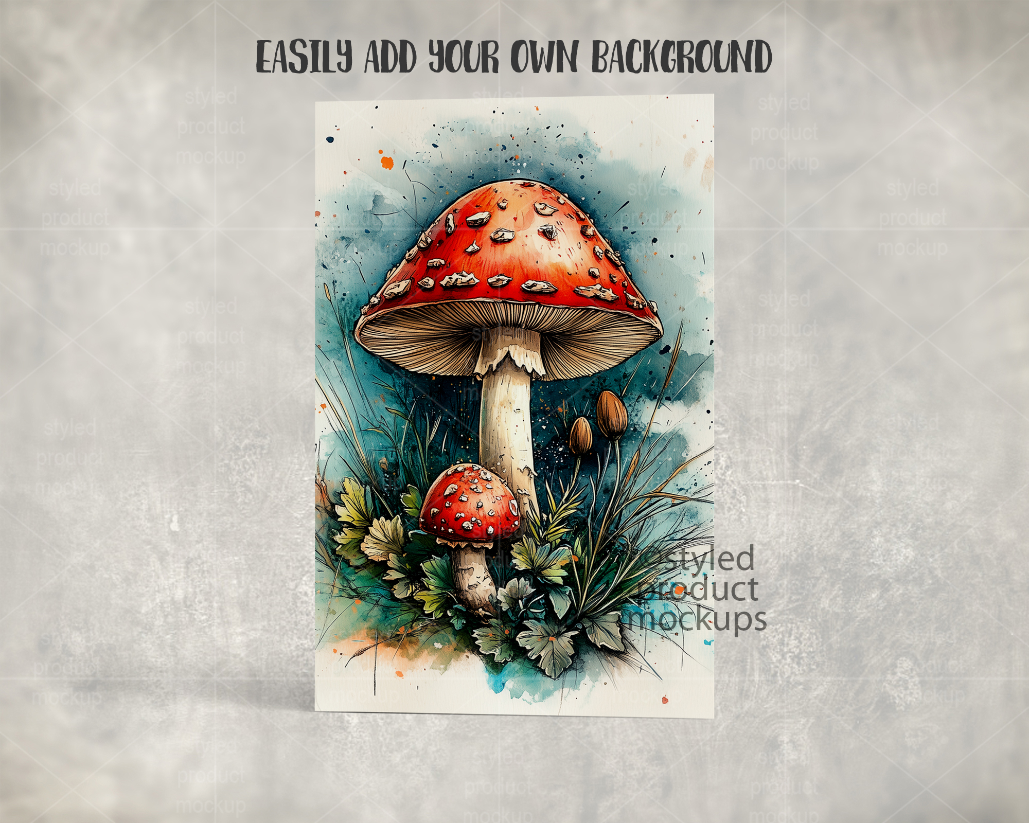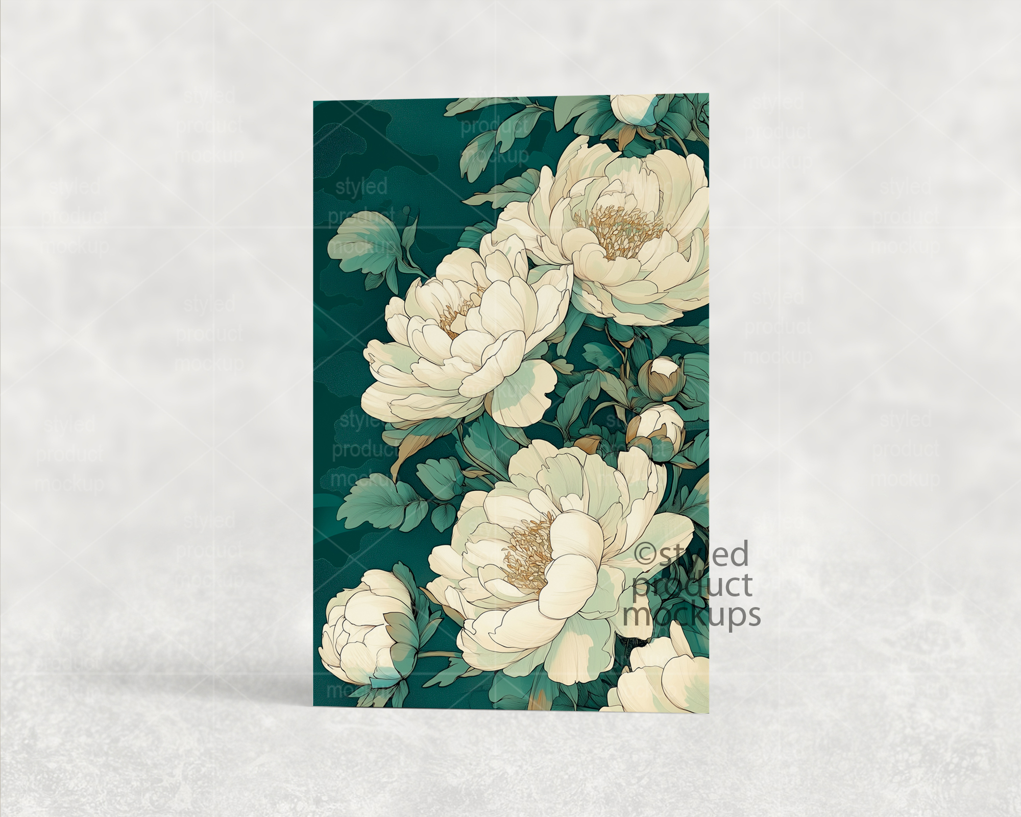 This listing is a mock-up that features a 5.5 x 8.5 inch (14 x 22 cm) greeting card shown vertically. Give a professional touch to your greeting card designs without the hassle of photographing each one. This styled product mockups template is ready to use, simply add in your own art files and background.