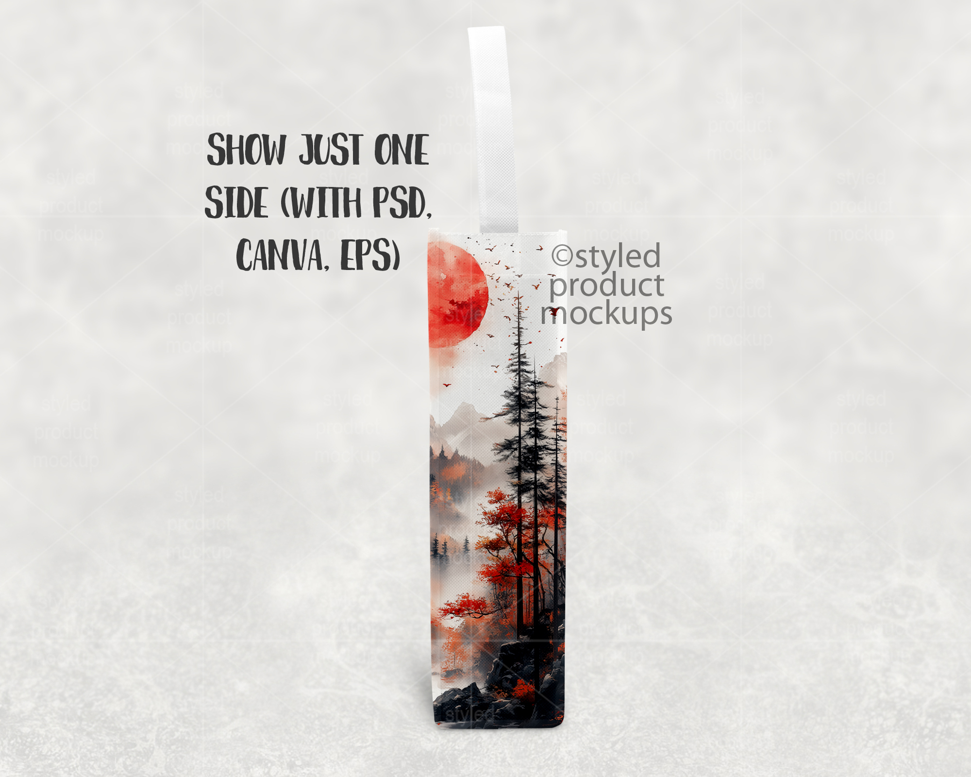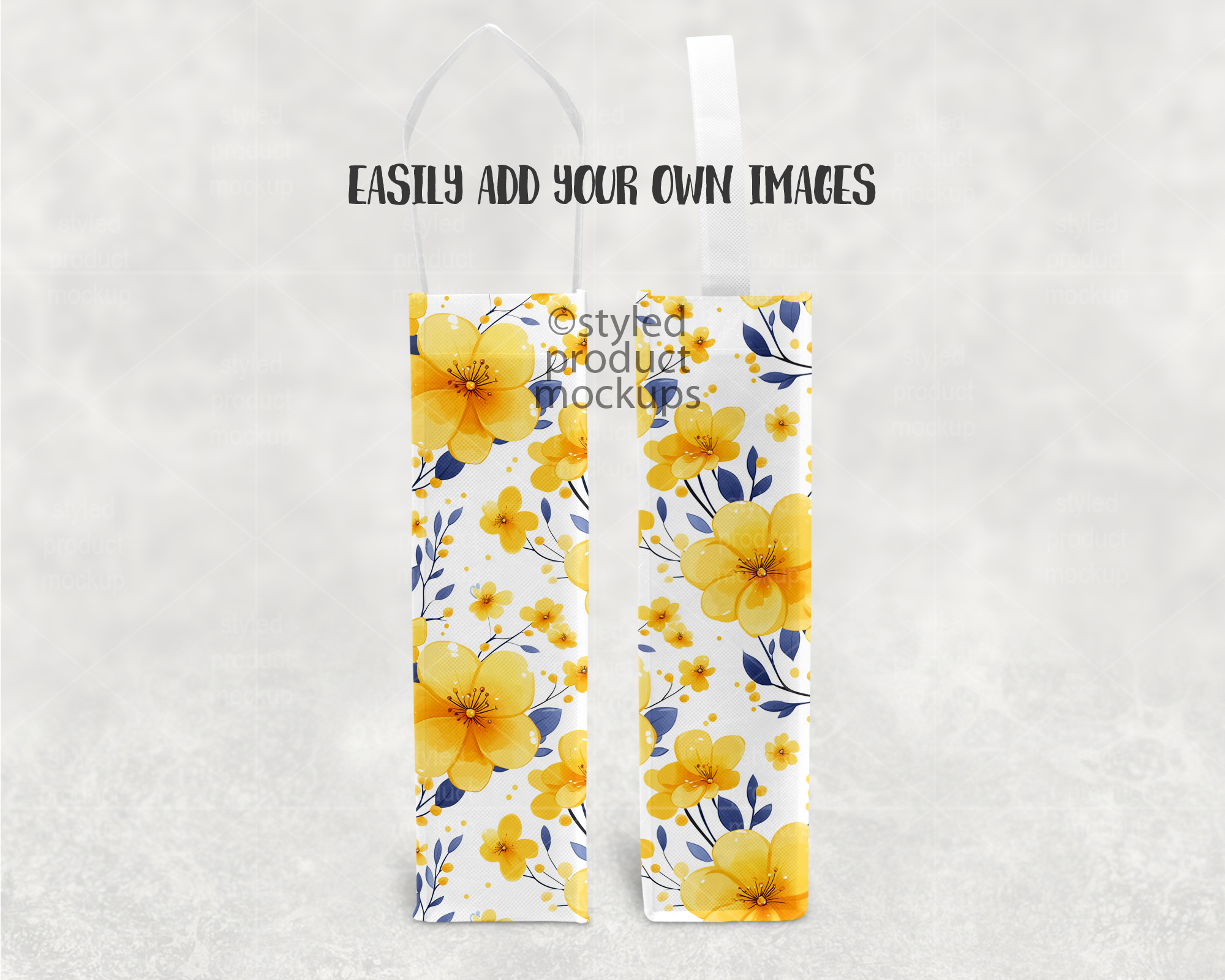 This listing is a mock-up that features a dye sublimation wine tote bag measuring 4×14” (10*36cm). Give a professional touch to your wine bag designs without the hassle of photographing each one. This styled product mockups template is ready to use, simply add in your own art files and background.